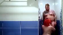 back  Redhead chubby fucking in the shower (video)